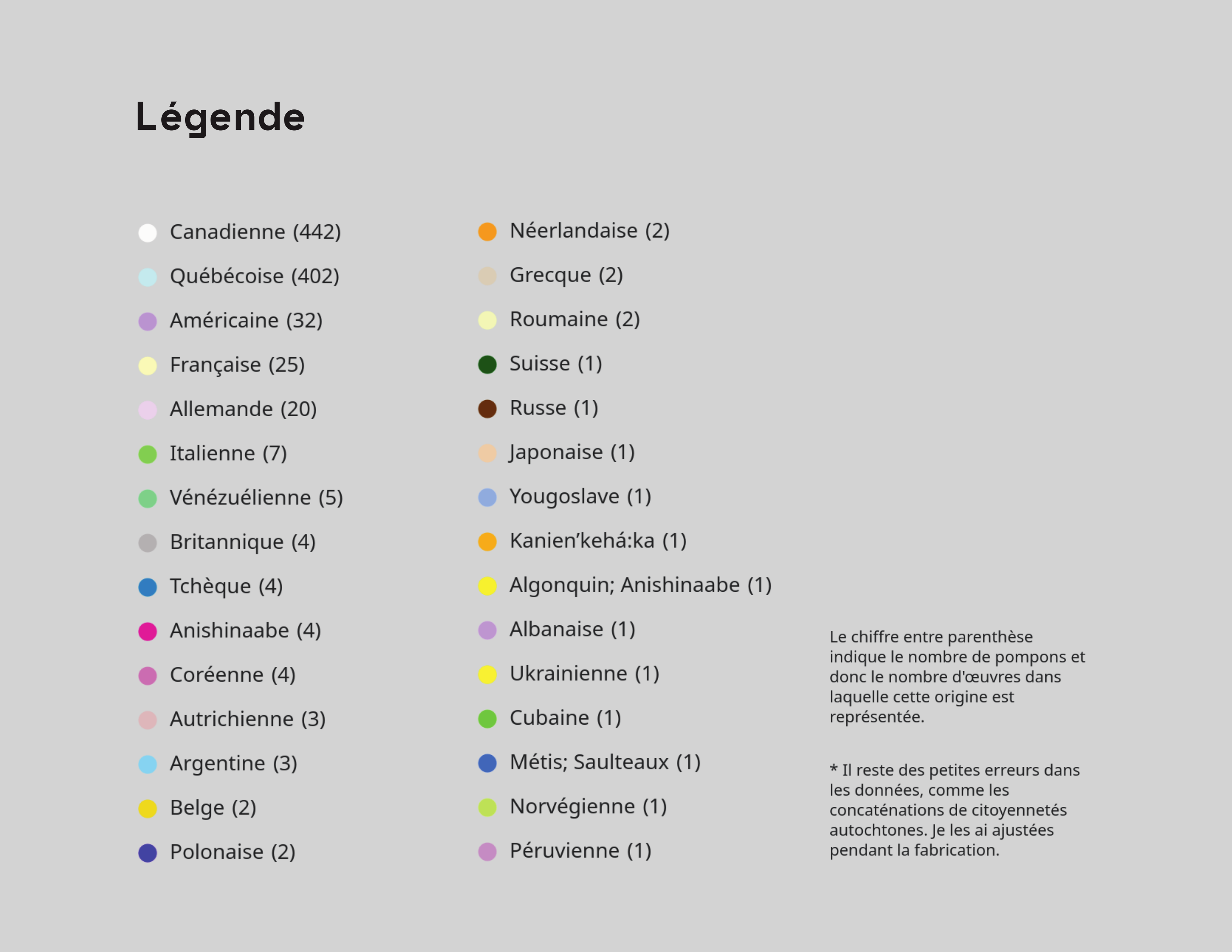 - Légende des couleurs des pompons
